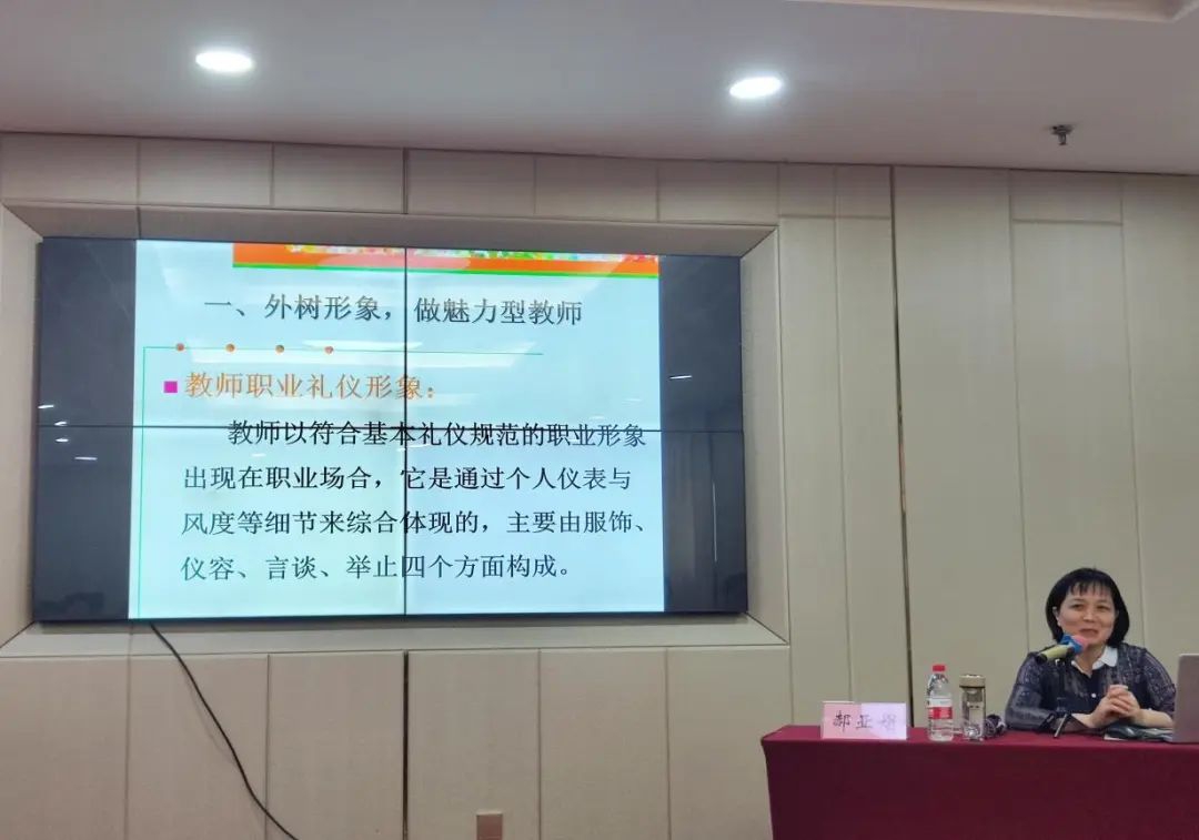 中共徐州市委党校马克思主义与哲学教研室主任、教授郝亚娟围绕师德师风及工作素养为学员们上了培训第一课。礼仪是教师对工作的尊重,是对学生润物细无声的教育,郝亚娟勉励学员们要外树形象,内强素质,尽力生长为兼具魅力与实力的教师。