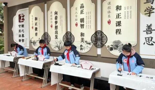 據悉,現在該集團兩校區均有專職的書法教師承當書法學科教育,除了把書法歸入課程體系,一二年級開設硬筆,三到六年級開設軟筆外,延時服務是校園社團活動時刻,校園設置硬筆和軟筆的社團,學生們安坐講堂一筆一劃練習寫字,讓濃郁的書香墨韻潤澤童心。
