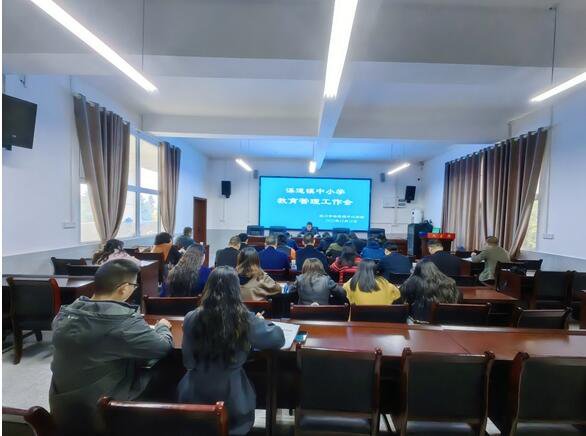 謀道鎮召開中小學教育辦理工作專題會議,謀道鎮中心班子成員、各中小校園長、分擔教學副校長及教訓室主任參加了會議,會議由謀道鎮中心校園校長張擁華同誌主持。