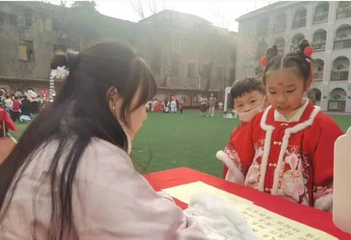 「『廟會』真好玩!我答對了所有問題,得到了橘子和水果糖獎勵!」一(1)班張心然說。女生張亦萱也說,今天教師和同學們穿得很美,玩得高興,她一點兒都不怕期末考試。