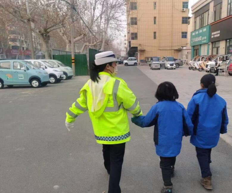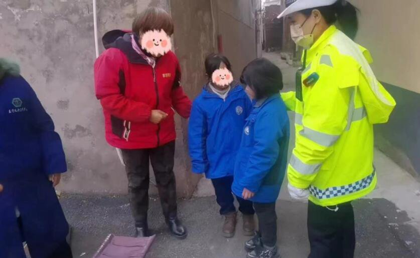 1月12日下午5時許,漯河市交警支隊次序辦理大隊交警王歡,在解放路與人民路交叉口西北角執勤時,兩個身穿校服的小學生引起了她的註意:兩個孩子在十字路口向南走至半途折回,待信號燈變換又跟著人群向東走數步後折回,終在路口踟躕不前。