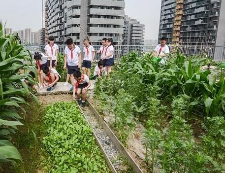 学校屋顶有一块“自留地”按时来浇水除草和收获