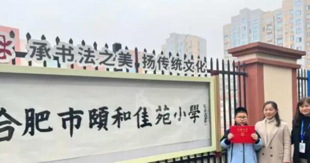 「合肥市頤和佳苑小學」,校園門口外的幾個大字,筆鋒雖還略顯幼嫩,卻已隱現矛頭。題寫校名的是合肥市頤和佳苑小學金牛路校區的範洪鑫同學。3月21日下午,合肥市頤和佳苑小學展開「我的校名我來寫」現場書法展現活動,被同學們和教師投票「最佳」的作品展現在校門外。